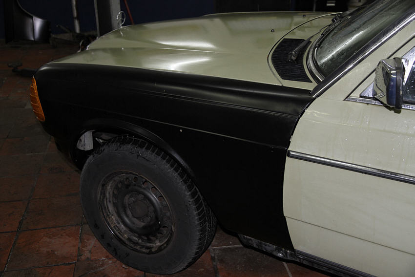 Blechstärke ist gleich. Alle Anschraublöcher passten und ließen sogar noch eine Nachjustierung zu. Nur das oberste Schraubenloch an der A-Säule mussten wir etwas nach innen drücken. Es wäre schön, wenn der Übergang zur Verbindung in der Mitte unten einen Zentimeter länger wäre. Hier mussten wir drücken. Ansonsten ist dieser Kotflügel definitiv eine kostengünstige Alternative.